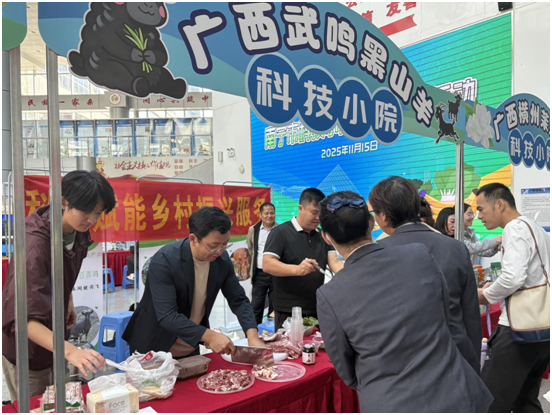 2025年11月15日,受广西南宁市科学技术协会邀请,广西大学农牧产业发展研究院牛羊团队主持的广西武鸣黑山羊科技小院在南宁科技馆参加了南宁市科技小院成果展示会。此次展示会广西武鸣黑山羊科技小院首席专家曾俊带领团队专家黄恒与研究生一同参与,并展示了科技小院的科研成果以及其在赋能乡村振兴服务方面的显著成效。