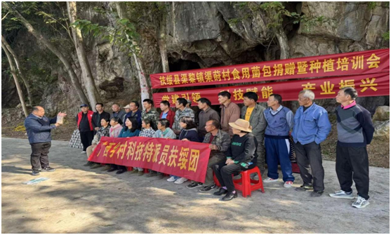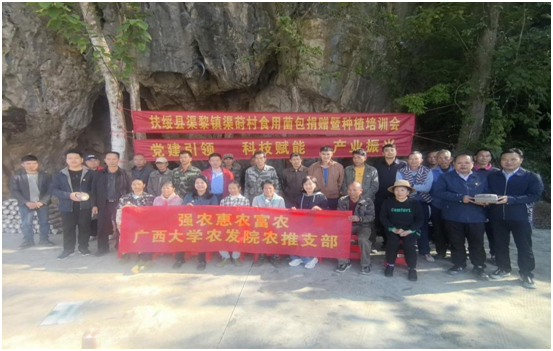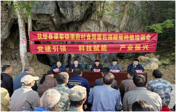 院党委书记甘敏思在致辞中指出,广西大学17000亩的农科新城坐落在渠黎镇辖区内,农科新城的规划建设和管理运营得到了崇左市、扶绥县、渠黎镇各级党委政府和广大群众的大力支持。广西大学坚持牢牢扎根八桂大地,非常注重科技创新和服务社会,努力打造领军团队及创新人才队伍,推进产学研结合和成果转化。本次食用菌包捐赠暨种植培训活动,是我院学习贯彻党的二十届四中全会精神,服务乡村振兴的具体行动。农发院将在种植技术、销售渠道等方面提供全方位服务,共同打造具有特色的庭院经济,助力群众增收致富。希望农推中心党支部和渠莳村党支部加强沟通交流,共建共享,为建设宜居宜业和美乡村作出更大贡献。
