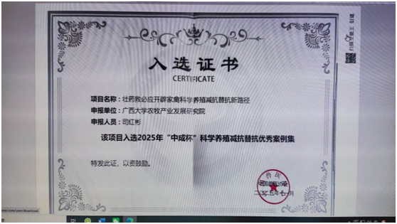 其中,“壮药救必应开辟家禽科学养殖减抗替抗新路径”项目成功入选2025年“中成杯”科学养殖减抗替抗优秀案例集。该项目深挖壮药特色资源,将救必应的天然药用价值与现代养殖技术相结合,为家禽养殖提供了安全有效的抗生素替代方案,契合农业农村部“兽用抗菌药使用减量化”行动要求,其技术路径的先行性与可行性获得评审专家高度认可 。