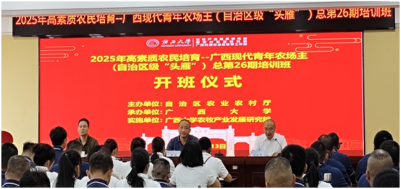 10月13日上午,2025年高素质农民--广西现代青年农场主总第26期培训班(1班和2班)在广西大学顺利开班。