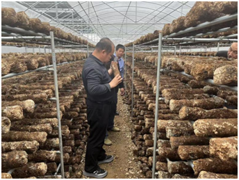 调研期间,科研团队秉持“摸实情、解难题、促发展”的原则,先后深入洋桥镇船埠新村食用菌种植基地等核心产区,实地察看香菇、大球盖菇等食用菌的生长态势、栽培环境及生产流程,详细询问种植规模、品种选择、产量效益、销售渠道及当前发展面临的困难,重点了解当地立体栽培模式的应用情况及“公司+农户+基地”的发展思路。团队成员现场记录相关数据,与种植户面对面交流,细致解答了菌棒培育、病虫害绿色防控、温湿度调控等生产过程中遇到的技术困惑,手把手传授科学种植技巧,为种植户提供精准技术指导。
