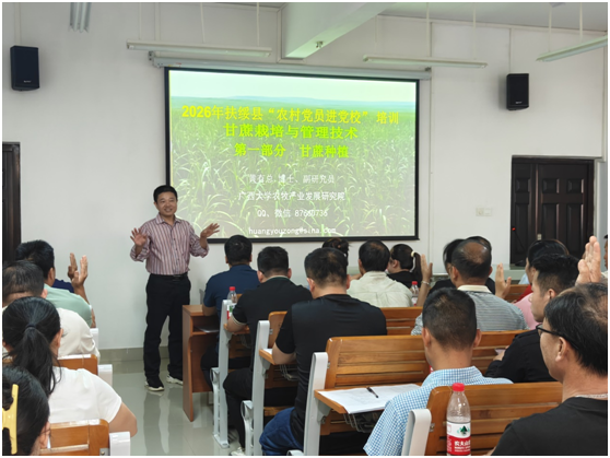 为进一步助力扶绥县甘蔗产业提质增效,破解当地甘蔗种植与收获环节的技术难题,推动传统甘蔗种植向规模化、机械化、高效化转型,4月1日,广西大学农牧产业发展研究院组织乡村科技特派员甘蔗产业相关专家团队,前往崇左市扶绥县开展甘蔗栽培技术培训与机械收获技术现场指导活动,为当地农村党员、蔗农及甘蔗专业合作社送上实用、前沿的甘蔗农技知识,以科技力量赋能扶绥县“甜蜜事业”高质量发展。