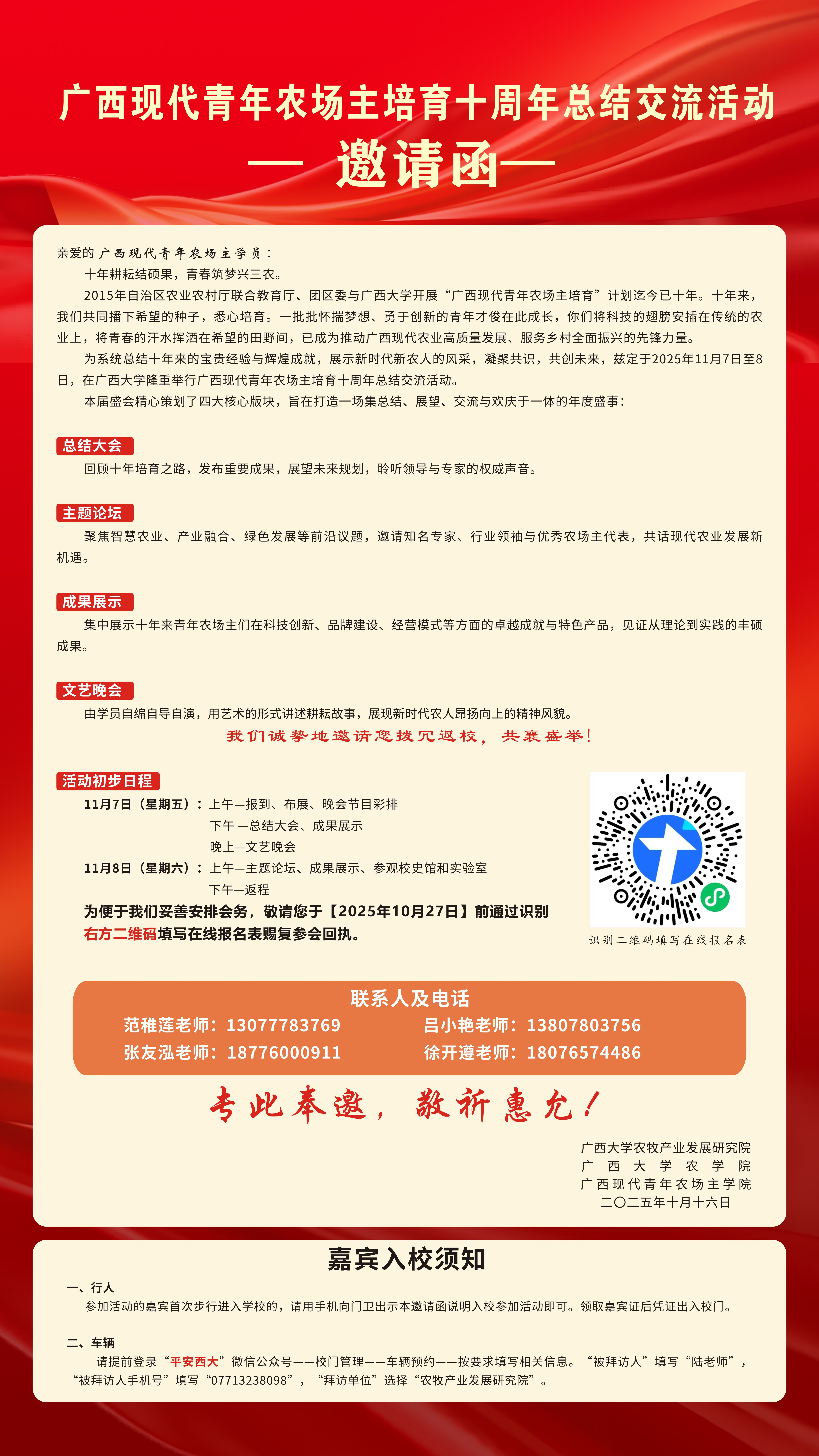 广西现代青年农场主培育十周年总结交流活动邀请函