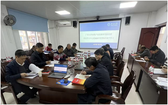 11月18日下午,广西大学农牧产业发展研究院党委理论学习中心组召开2025年度第5次集中学习会,专题学习习近平总书记在党的二十届四中全会上的重要讲话精神和全会精神。院党委书记甘敏思主持会议并做领学和总结讲话,院党委理论学习中心组成员参加学习,校党委宣传部副部长梁庆周列席会议。